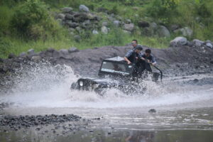 Peserta diajak menikmati suasana pedesaan sekitar Candi Borobudur menggunakan kendaraan VW klasik. Aktivitas ini memberikan pengalaman rekreasi ringan sekaligus mempererat hubungan antarpeserta dalam nuansa budaya dan wisata sejarah. - Jeep Lava Tour Merapi